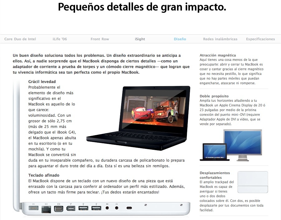 Apple Espaà±a: MacBook 2,5 cm mas delgado que el iBook ;). Error STILL there 😉